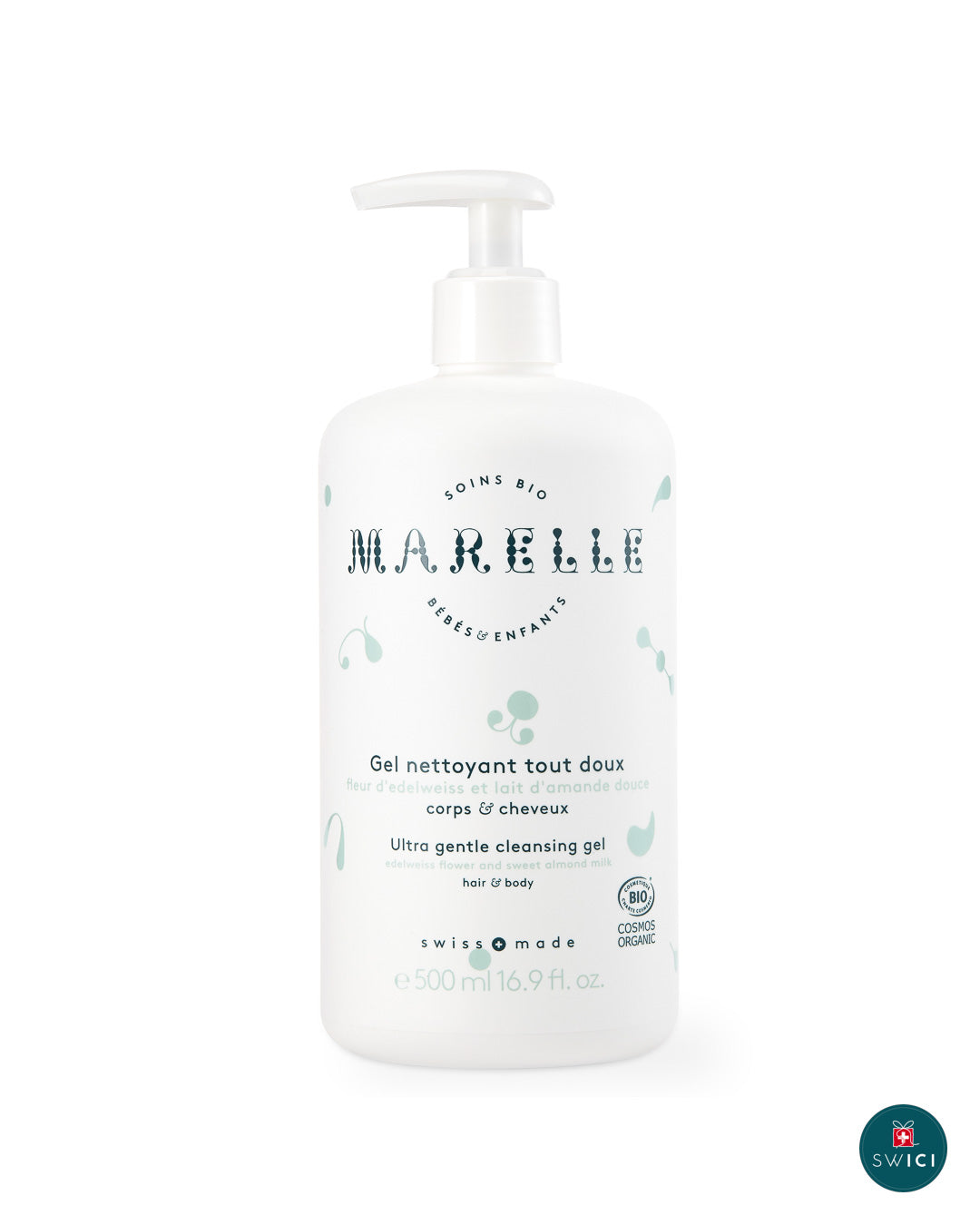 Its formula contains extracts of edelweiss flower grown organically in the Swiss Alps with protective and softening properties and moisturizing organic sweet almond milk.