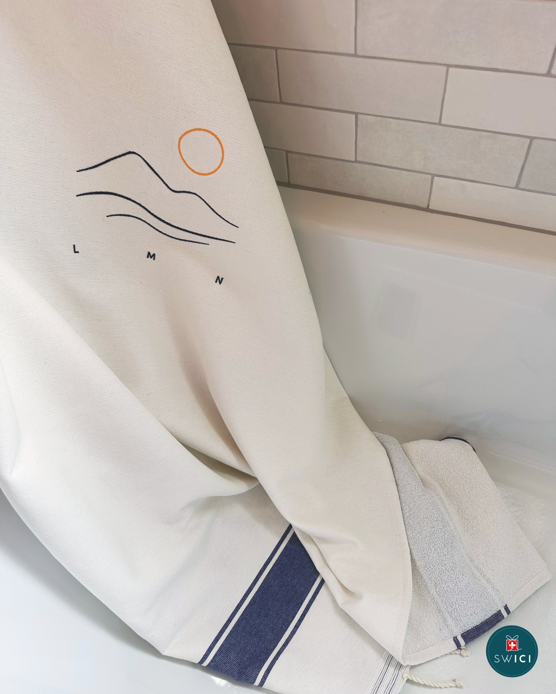 Serviette de plage et de bain - 100% Coton Recyclé certifié GRS et OEKO-TEX sans substance nocive.
