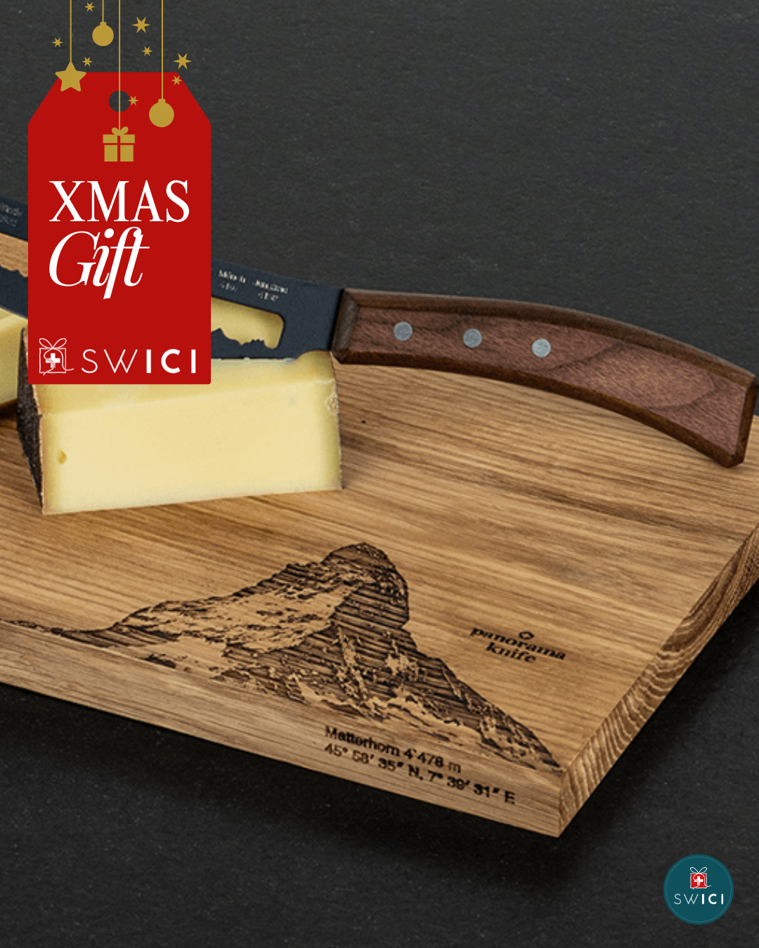Le majestueux Cervin s’étend à une altitude de 4’478 mètres et offre une vue panoramique sur les Alpes. C’est probablement la montagne la plus célèbre d’Europe et le symbole de la Suisse. Situé à la frontière du canton du Valais, entre Zermatt et le Breuil-Cervinia italien, il offre une vue imprenable sur les environs. Un paradis pour tous les amoureux de la nature et un sujet parfait pour notre planche à découper en bois !